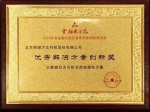 ■ 明朝萬(wàn)達(dá)榮獲2018年度“金融科技優(yōu)秀解決方案創(chuàng)新獎(jiǎng)”