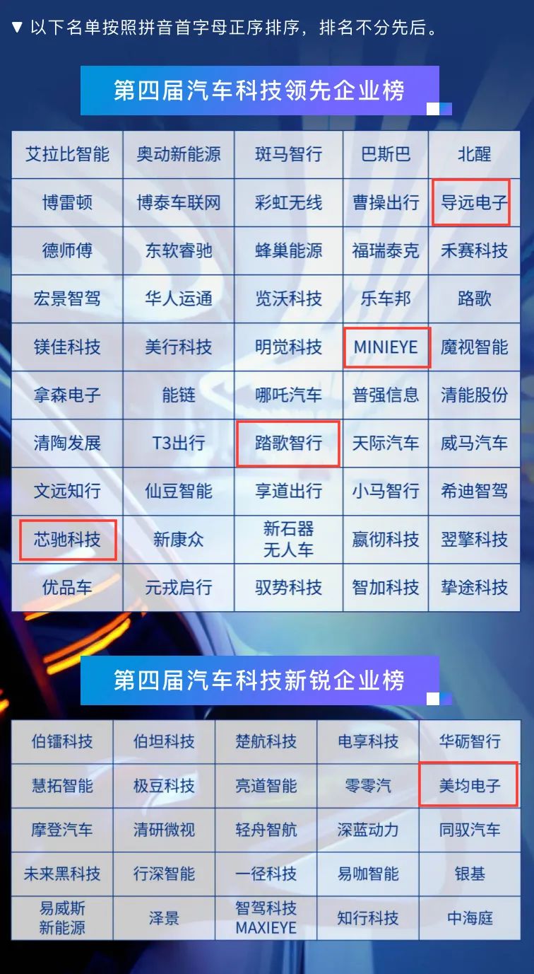8月4日,第四屆畢馬威中國(guó)汽車科技50榜單正式發(fā)布,合創(chuàng)資本早期投資企業(yè)導(dǎo)遠(yuǎn)電子、MINIEYE、踏歌智行、芯馳科技榮膺“畢馬威汽車科技領(lǐng)先企業(yè)50強(qiáng)”,美均電子入選“畢馬威汽車科技新銳企業(yè)榜”。