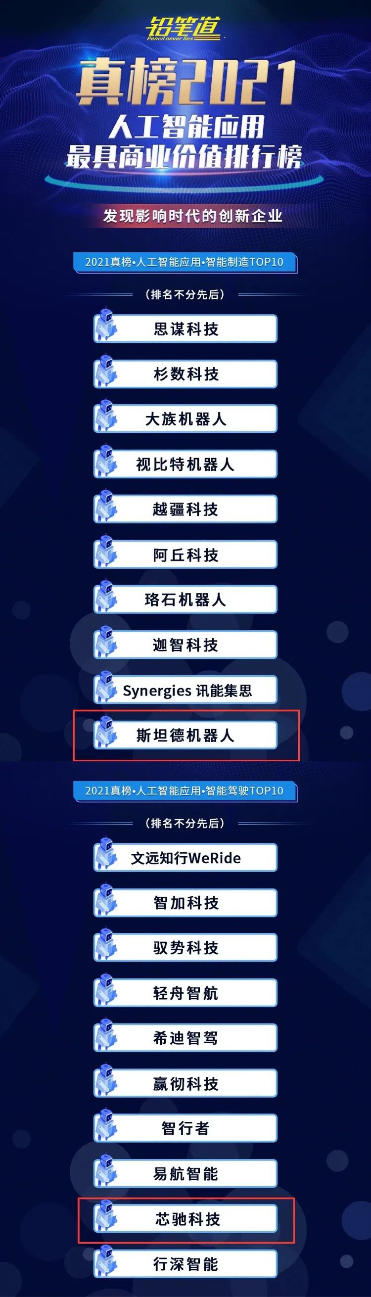 8月12日,鉛筆道發(fā)布“2021真榜?人工智能應(yīng)用排行榜”,合創(chuàng)資本早期投資項(xiàng)目斯坦德機(jī)器人、芯馳科技分別在智能制造、智能駕駛領(lǐng)域脫穎而出,登頂榜單。
